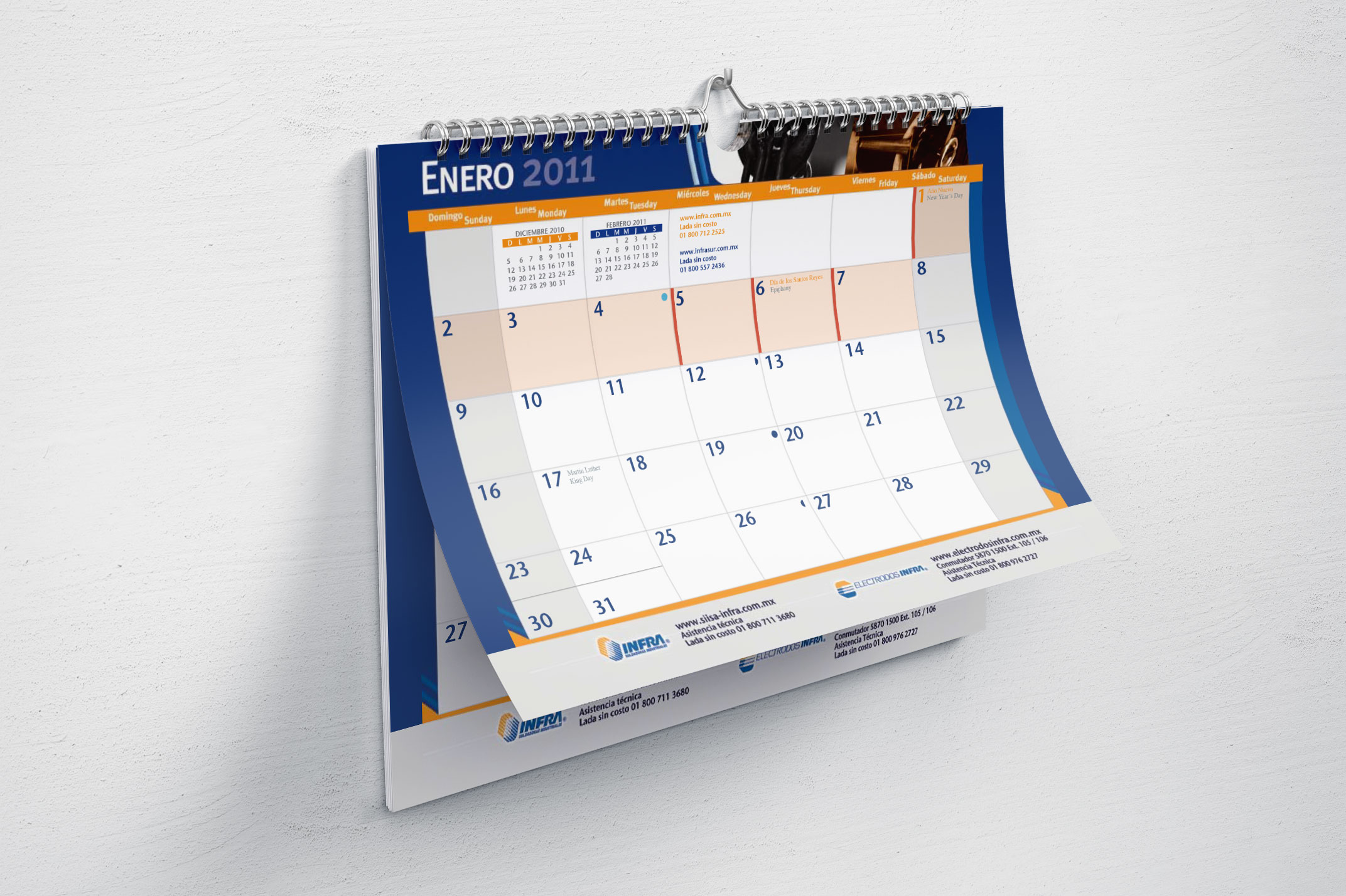 Grupo INFRA es un conglomerado de compañías dedicadas a la tecnología de la transformación. Durante varios años desarrollamos los calendarios anuales de regalo para colaboradores y clientes. Se contempló un trabajo de personalización para algunas de las compañías con fotografía de producto, creación de diseño y logotipos de convenciones.