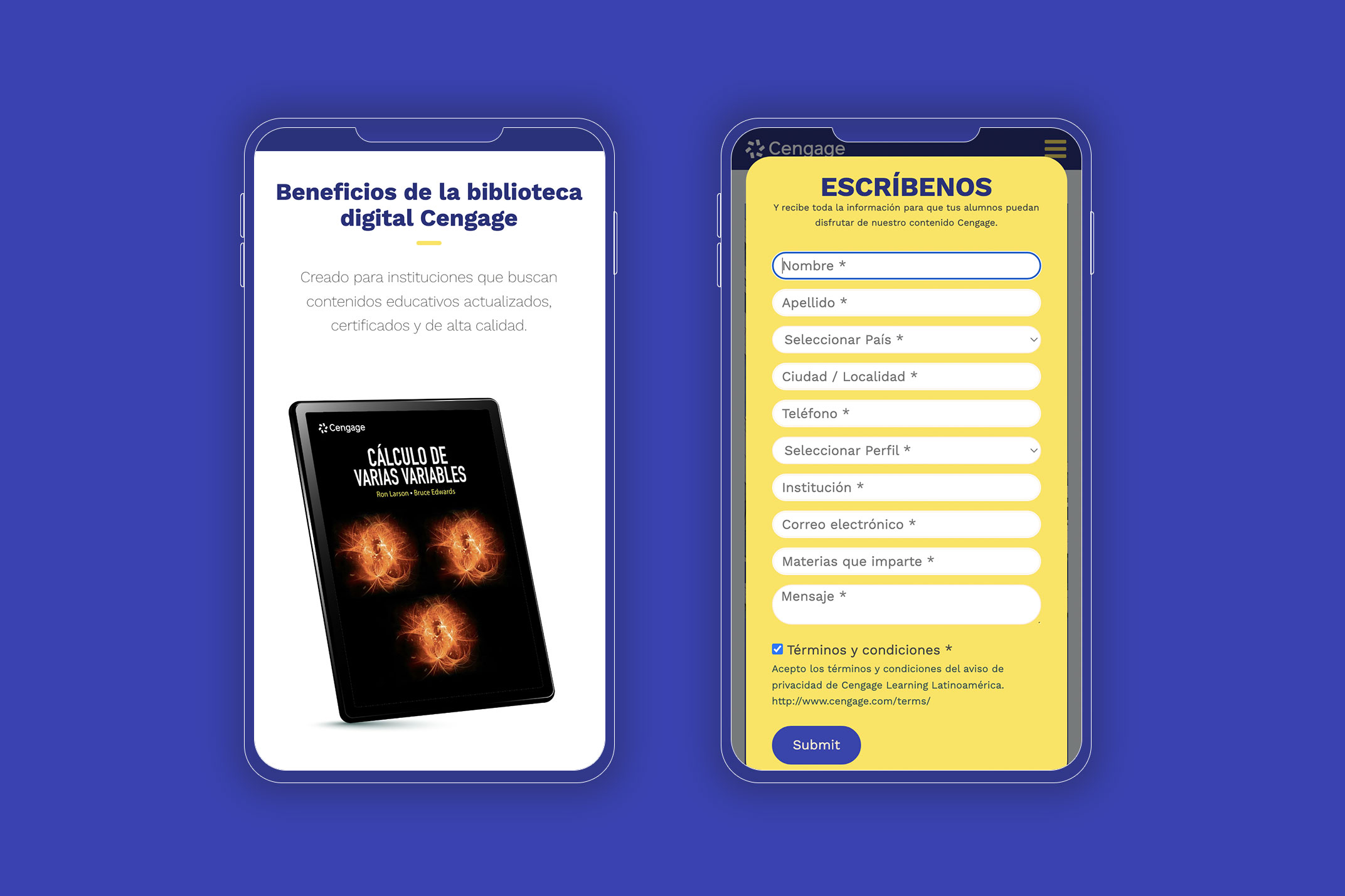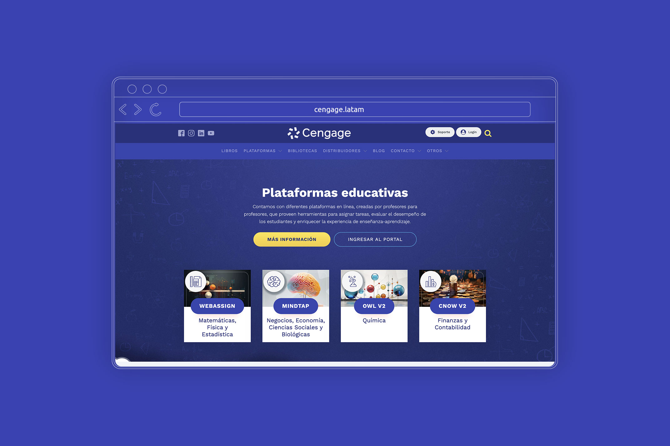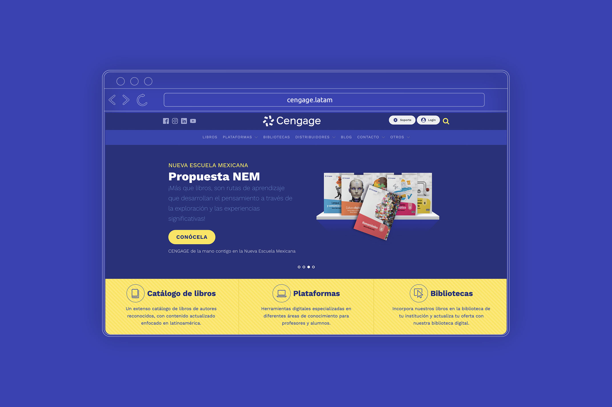 Rediseño del sitio completo de Cengage para Latinoamérica; optimización de SEO y ajuste de acuerdo a la nueva identidad de marca.