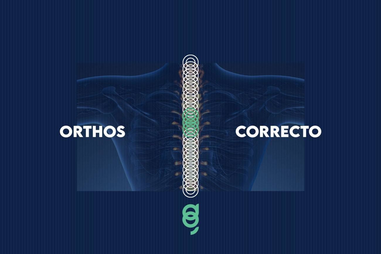 La identidad es acompañada por un patrón de lineas verticales que ayudan a reforzar la idea de rectitud (orthos) que busca un pediatra.