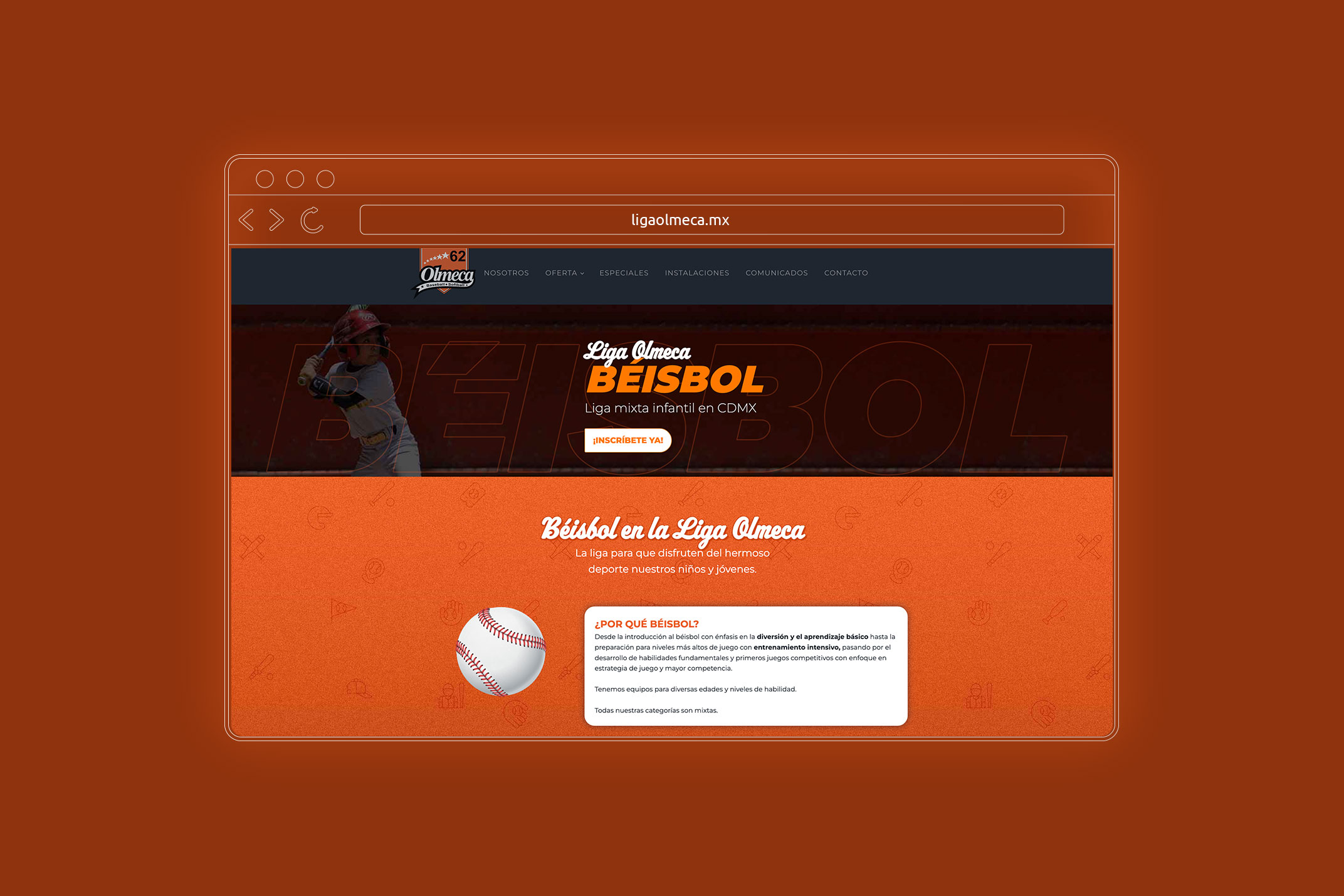 Diseño del sitio completo para la Liga Olmeca de Béisbol de la Ciudad de México. Desarrollo de Blog para uso interno.