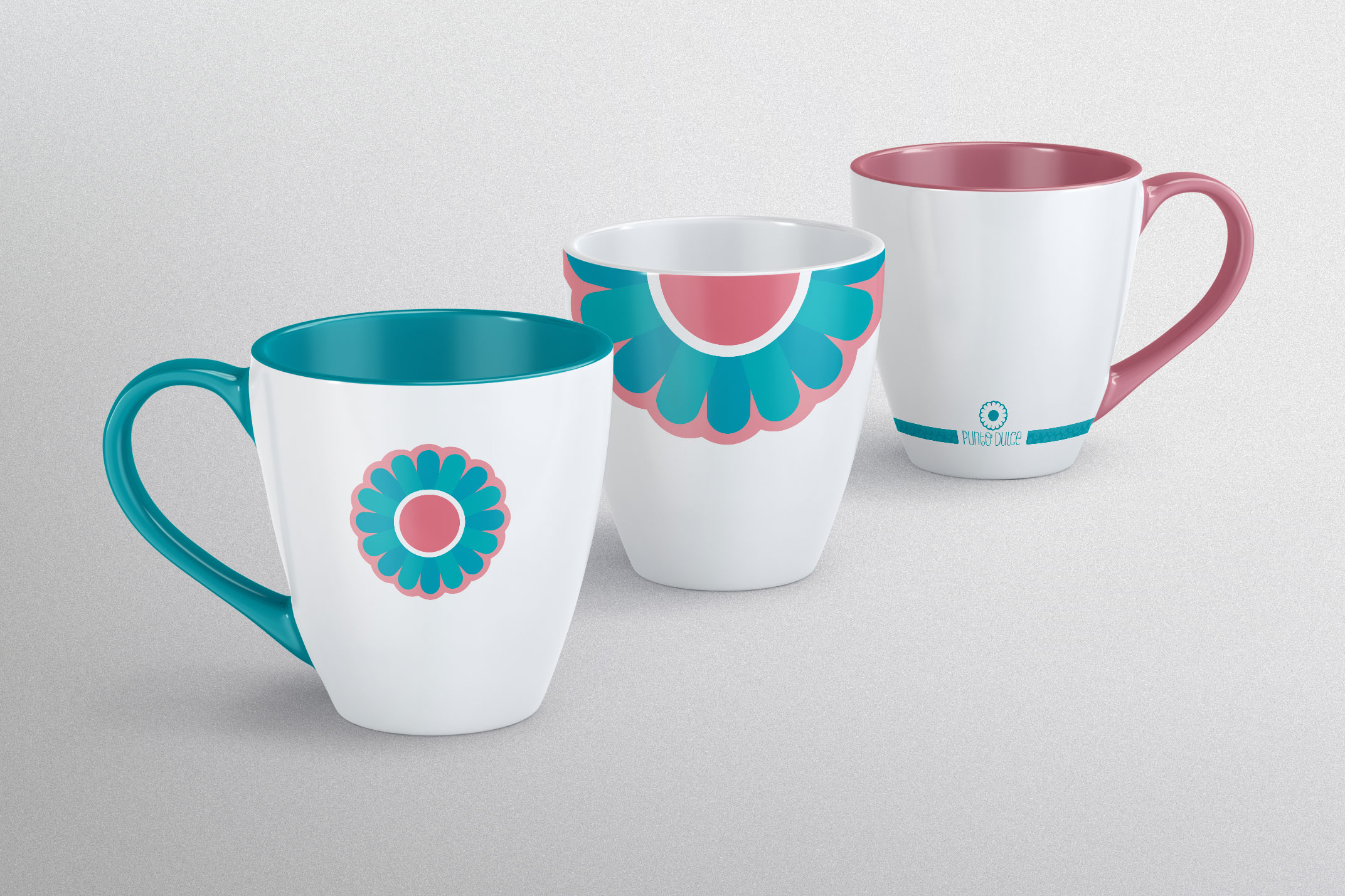 La marca se ideó a partir del nombre, el punto como centro y de ahí se expande a los lados como flor; La idea es ver un pastel desde arriba con geometría, simetría y partido en piezas, utilizando un elemento gráfico asociado a la dulzura como la flor.