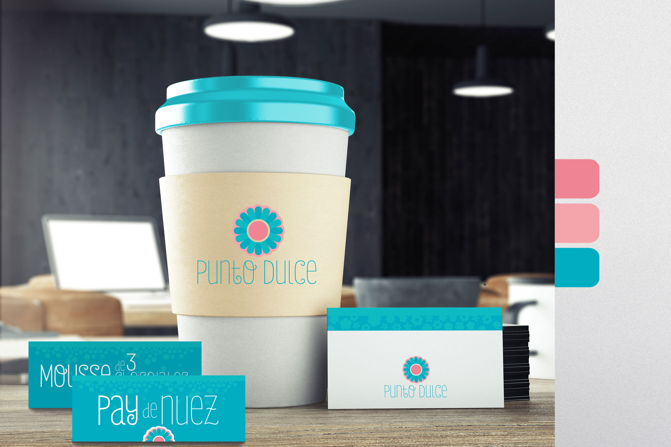 Creamos la marca Punto Dulce con su identidad visual logotipo, paleta de colores, papelería y aplicaciones para la pastelería de la CDMX.