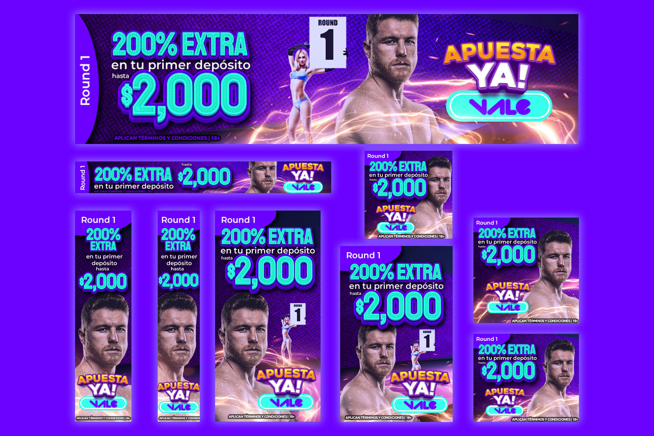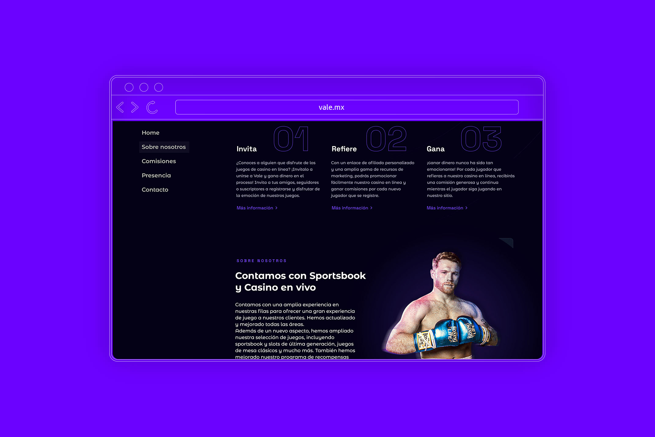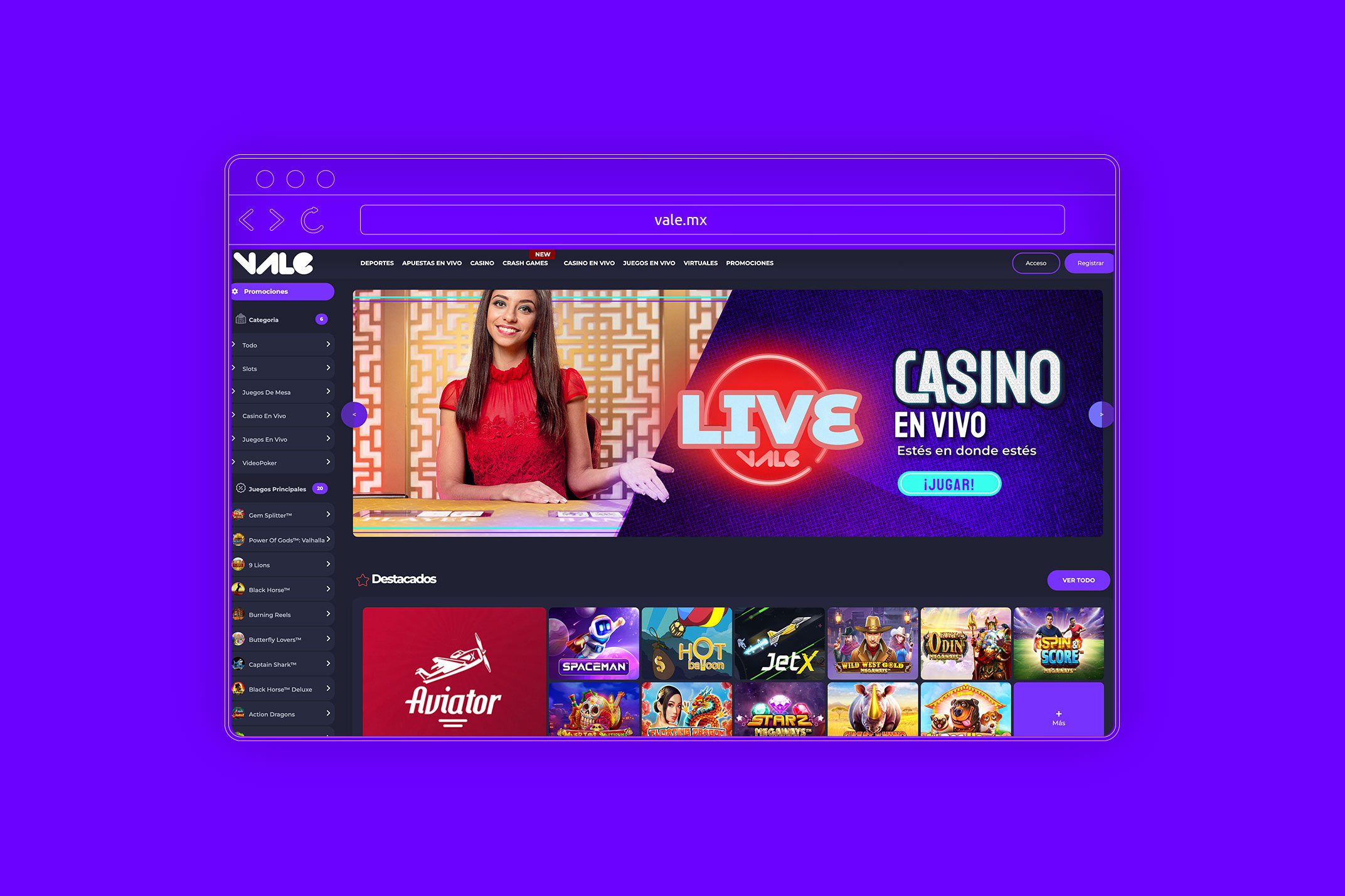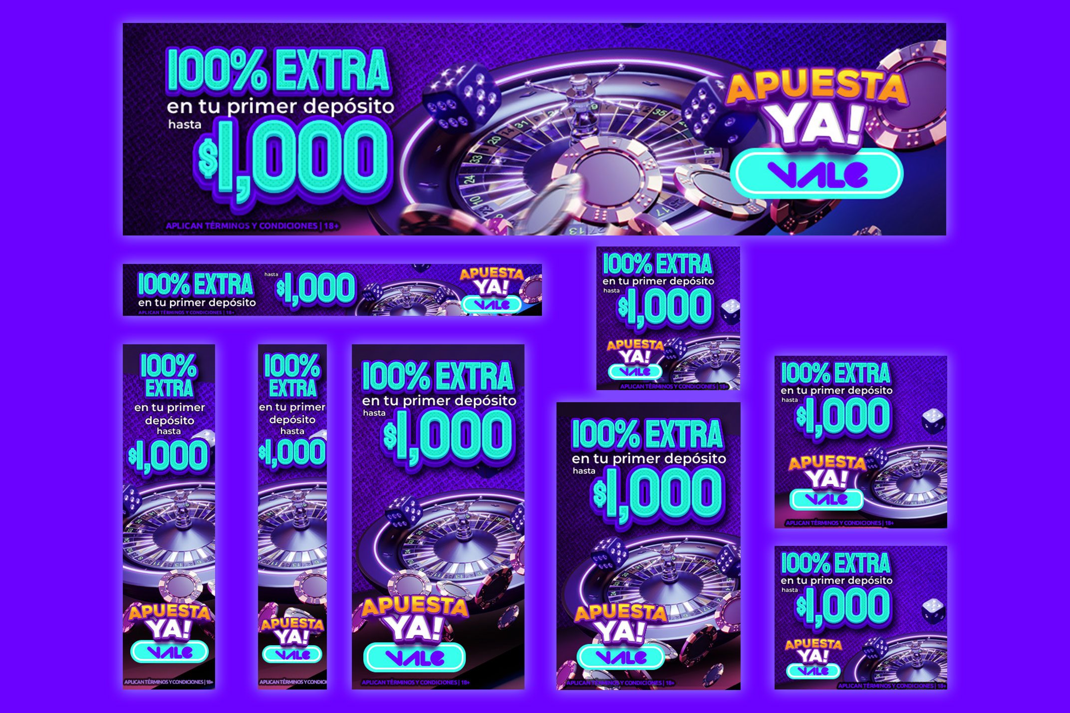 Creación del concepto y look & feel de lanzamiento de la marca. vale es una casa de apuestas online que ofrece jugar tanto en deportes en vivo como en slots. La idea fue estructurar los lineamientos clave de color comunicación visual para enganchar al consumidor. Se crearon aplicaciones digitales, landing pages, emailings y mucho más.